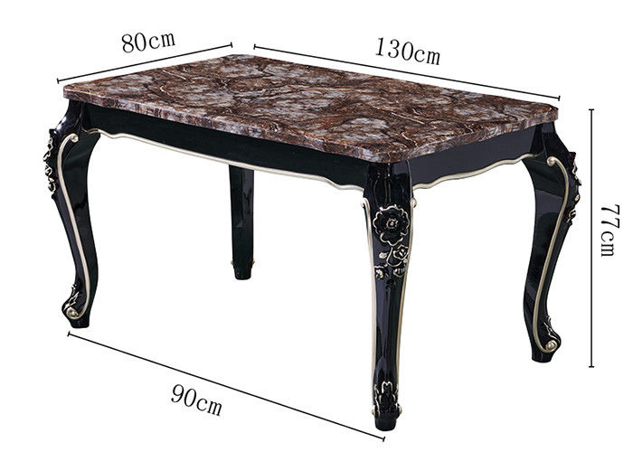 หรูหราสไตล์ยุโรปสีแกะสลักไม้มะเกลือหินอ่อนทนทานโต๊ะรับประทานอาหารสำหรับครอบครัว