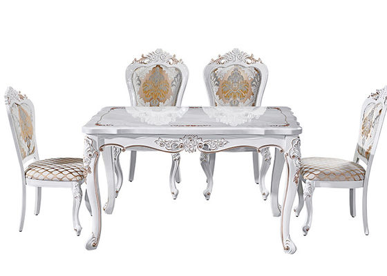มีลวดลายแกะสลักสวยงามที่ด้านข้างและขาโต๊ะอาหารขาโต๊ะอาหารสไตล์ยุโรปใช้การออกแบบคอลัมน์ทั่วไป ซึ่งเป็นองค์ประกอบที่เป็นตัวแทนของสไตล์ยุโรปโดยทั่วไปโต๊ะอาหารโดยรวมมีความหรูหรา สั้น และโรแมนติก